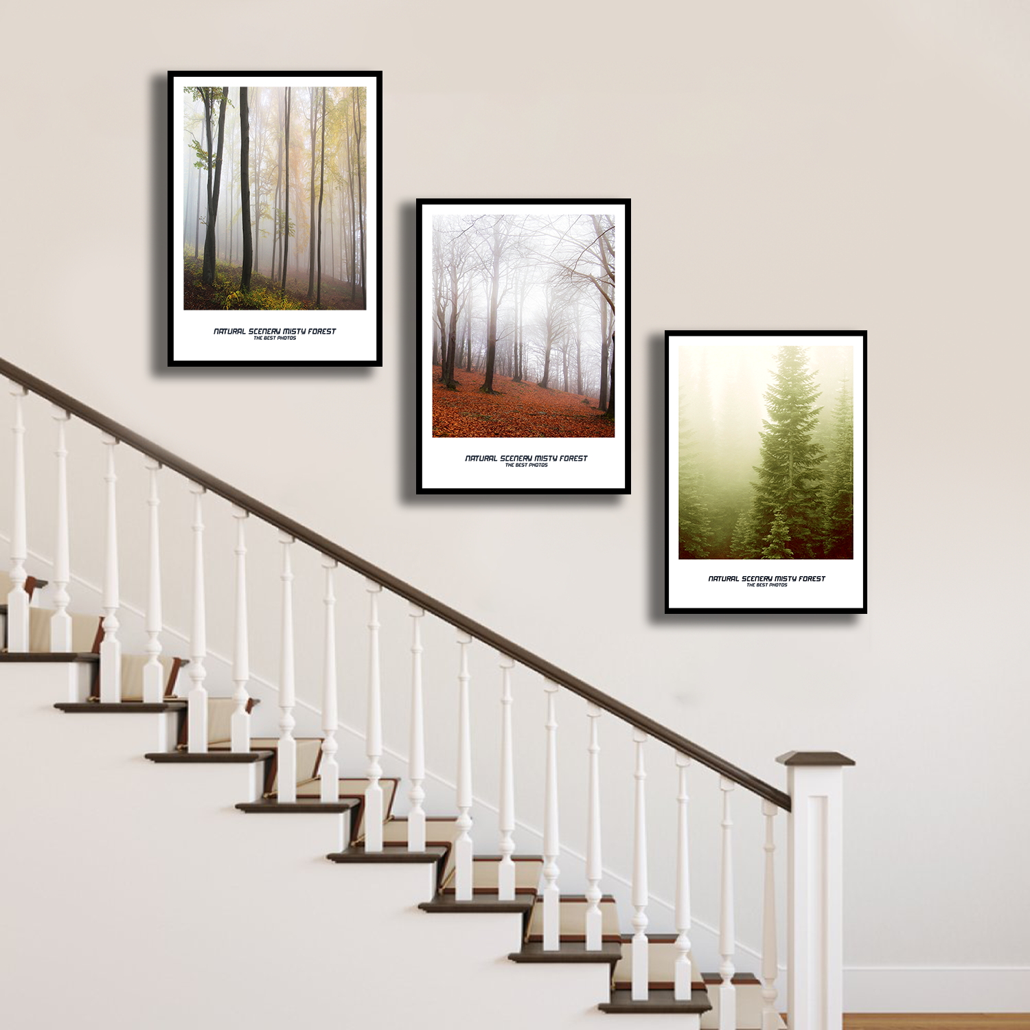 Bộ 3 tranh phong cảnh rừng cây trang trí cầu thang PTR03006