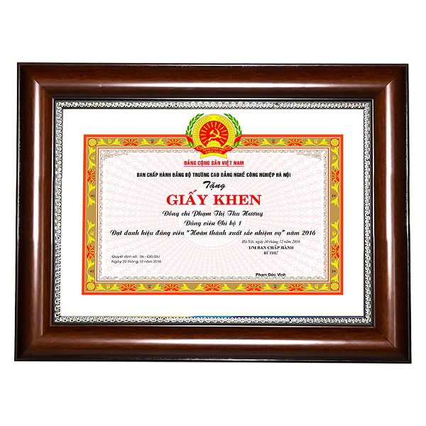 - Chất Lượng Tốt: Khung được làm từ vật liệu cao cấp, thiết kế cong nhẹ nhàng, màu nâu trầm sang trọng, phù hợp để trưng bày các bằng khen, chứng nhận trong mọi không gian văn phòng, tổ chức.