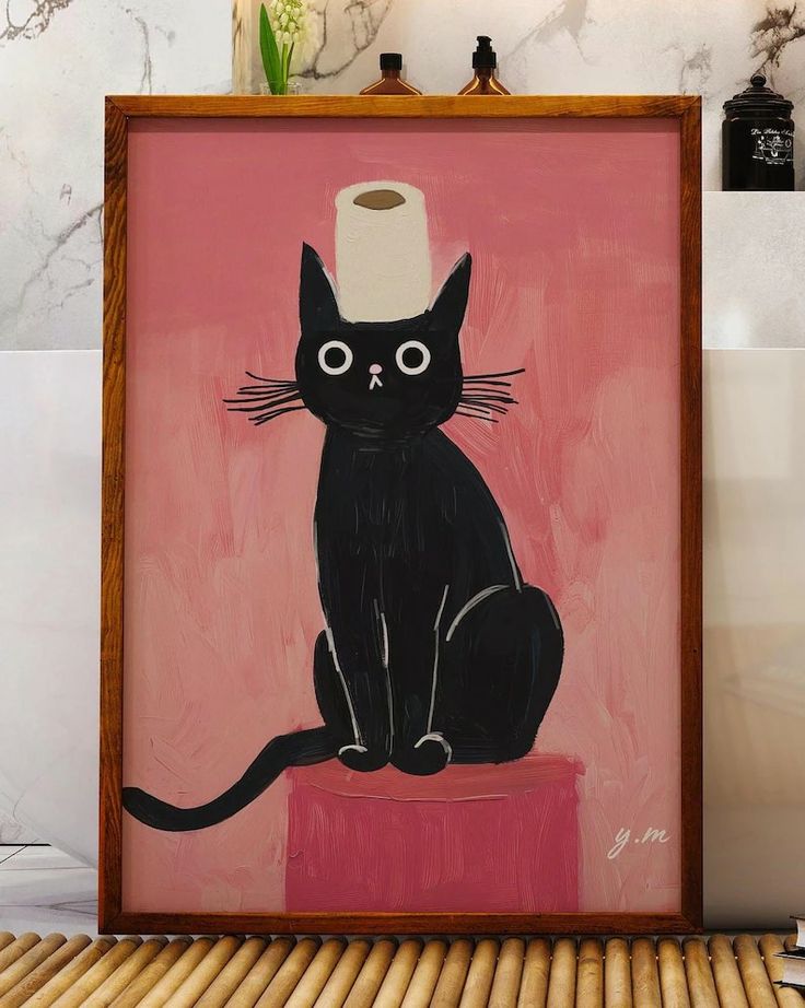 Tranh con mèo trang trí nhà vệ sinh PTR01188